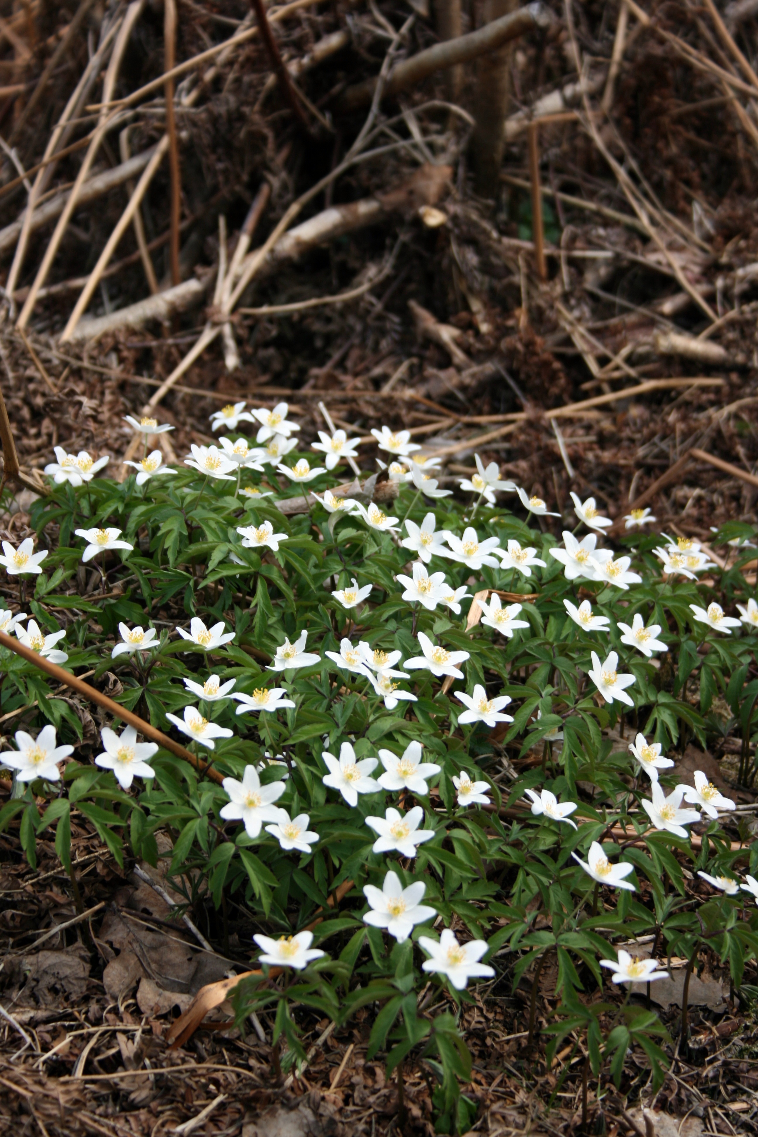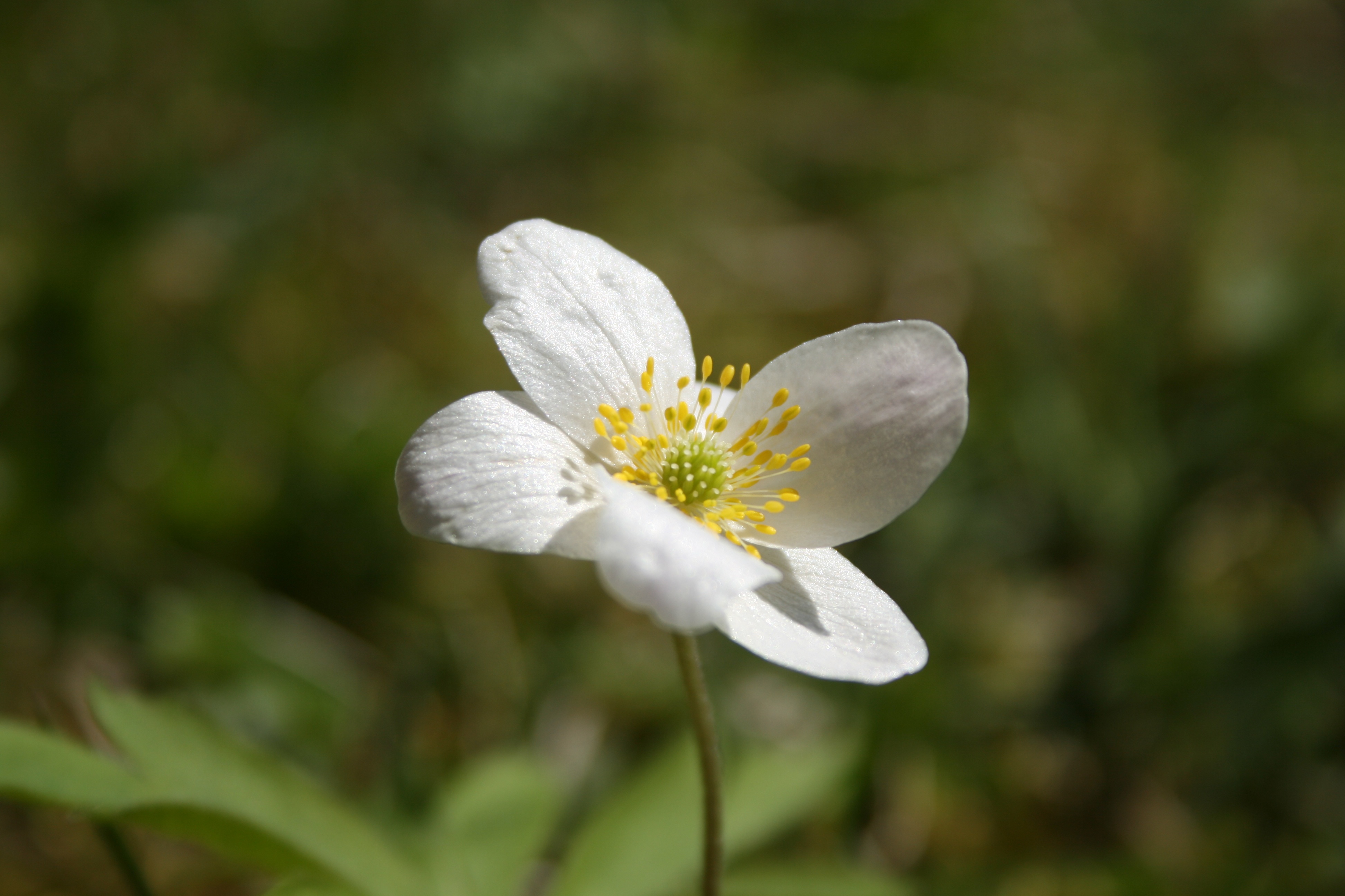 Žiedai po vieną stiebo viršūnėje. Apyžiedžiai balti, jų būna nuo 6 iki 12. Pasitaiko, kad viršutinė apyžiedžio dalis būtų rausvo, alyvinio atspalvio. Apyžiedžio lapelis kiaušiniškas, lygiu kraštu. Kuokeliai geltonos spalvos, trumpesni už apyžiedžio lapelius. Žydi balandžio – gegužės mėnesiais. Pasitaiko žydinčių rugsėjo – spalio mėnesiais.