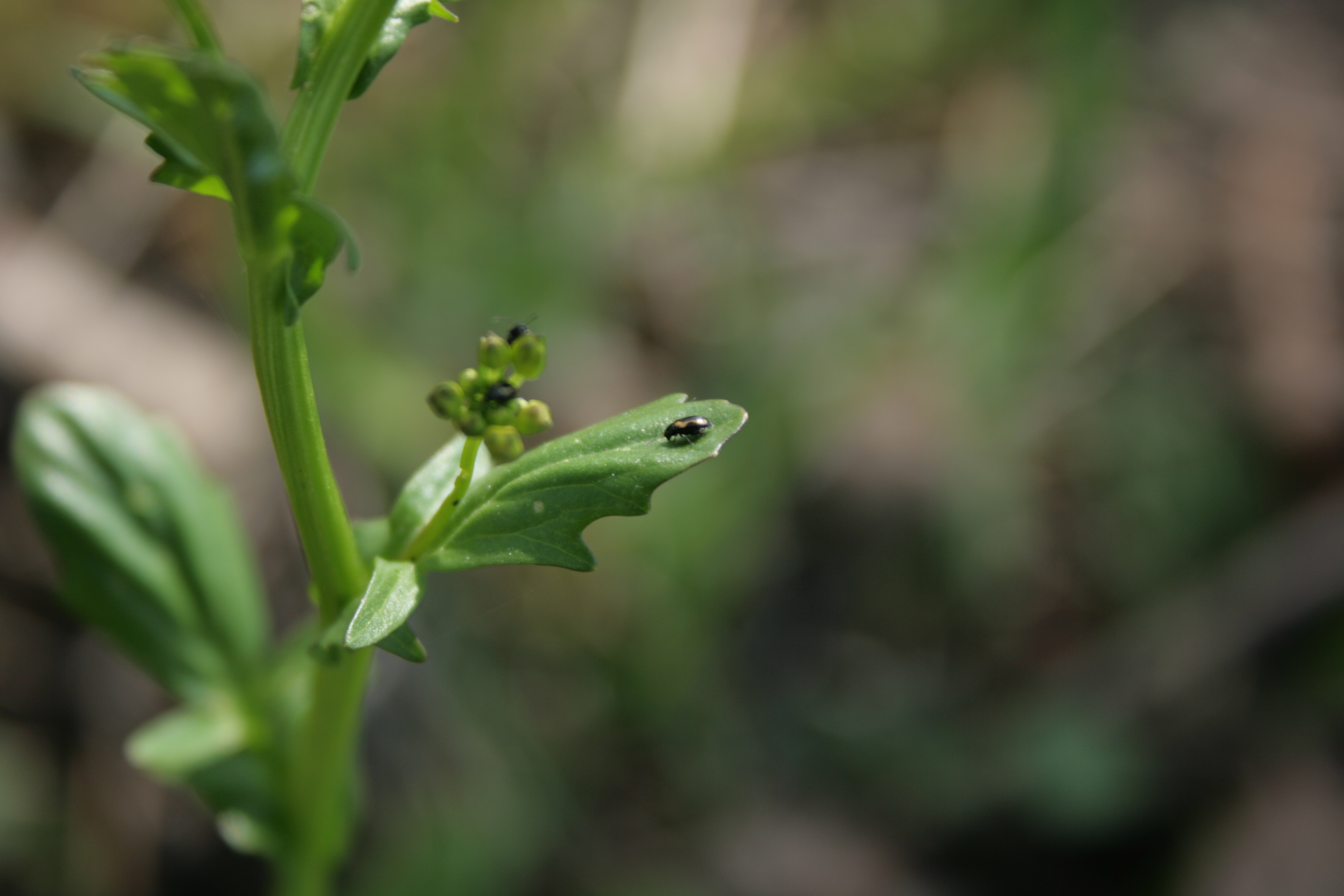 • 2017 05 09 Daugelį bastutinių šeimos augalų mėgsta spragės. Tai maži vabalai, kurie priartėjus ar palietus lapą „spragteli” ir pabėga. Fotografuodamas atkreipiau dėmesį, kad ant paprastosios barborytės lapų taip pat matyti keletas smulkių vabalų. Trumpai pasidomėjus galiu pasakyti, kad tai kopūstinė spragė (Phyllotreta striolata). Jei atidžiau pažiūrėsite į ne labai kokybišką nuotrauką, matysite, kad ant nugaros esantys šviesesni dryžiai nėra lygūs ir tai leidžia ją atskirti nuo kitos panašios – krieninės spragės (kurios šviesesni dryžiai lygūs).
