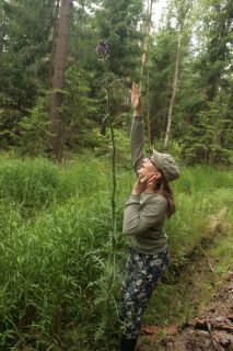 - 2017-06-21 Vaikštant šalikele žaliojoje girioje iš toliau pastebėjau itin aukštus žolinius augalus. Priėjus arčiau nusprendžiau, kad tai pelkinės usnys, kurios neįprastai aukštos. Literatūroje nurodoma, kad dažniausiai tai 60-180 cm aukščio augalai, tačiau aukščiausias iš mano pastebėtų siekė ~2,5 metrus. Galbūt tai susiformavęs atskiras porūšis. Aplinkui matyti apie 10 neįprastai aukštų augalų. Pastebėjau vieną labai aukštą pernykščio augalo stiebą.