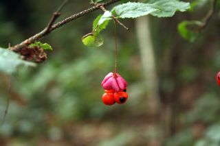 Karpotasis ožekšnis. Nuotraukoje aiškiai matyti, kad tai karpotasis iš bent jau dviejų požymių (nes Lietuvoje auga ir auginama daugiau ožekšnių). Tik karpotojo ožekšnio vaisiai turi juodas “akutes”, o žalios spalvos šakelės pasidengusios “karpomis”. Vieną kartą dėmesį atkreipus į tokias šakeles dėmesį šį augalą galėsite lengviau atpažinti žiemą ar pavasarį kai kitų požymių mažai.