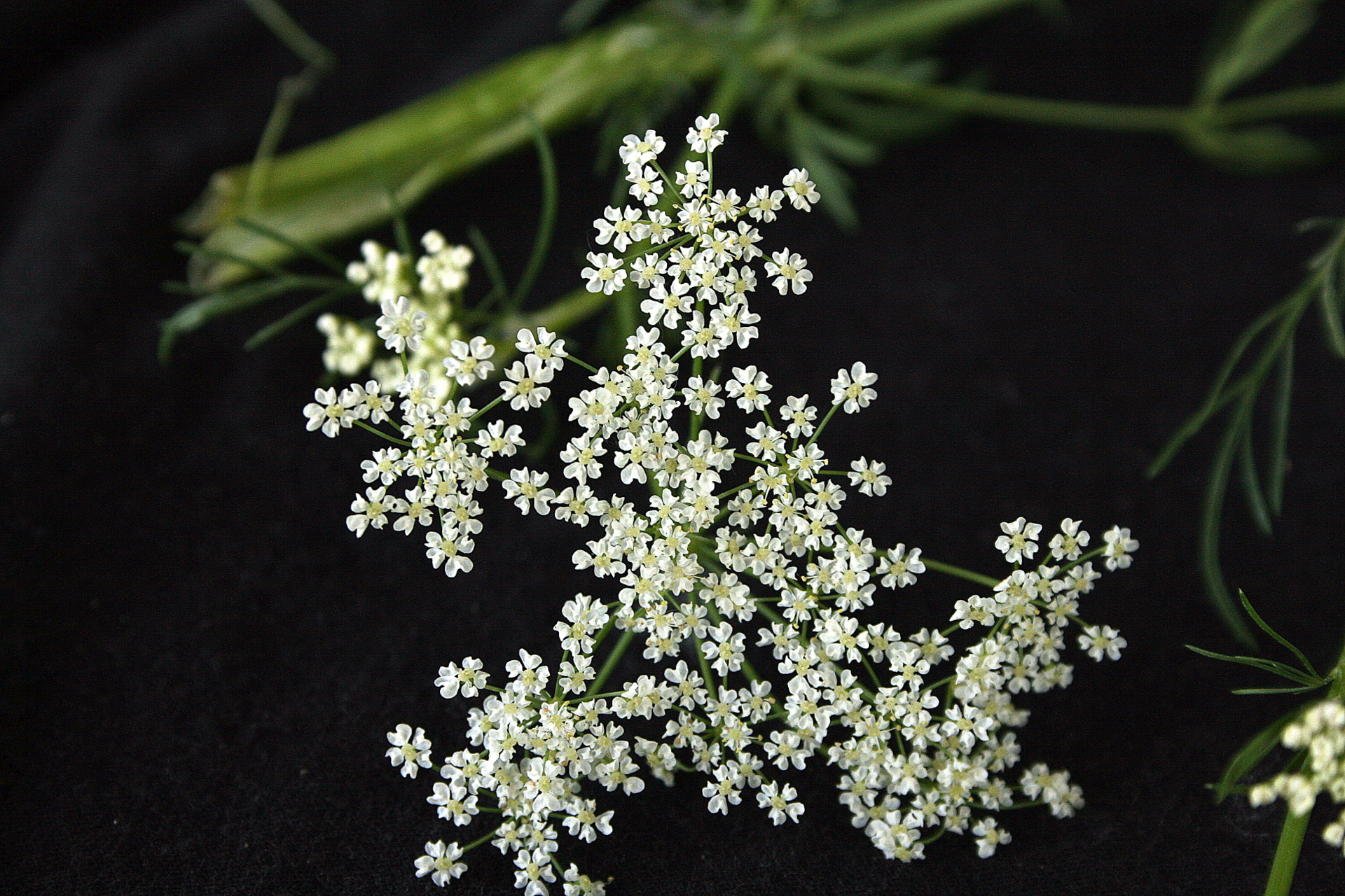 Paprastosios morkos žiedynas. Esu ne kartą matęs nuotraukų kuriose užfiksuoti augalai juodame fone. Tai gal net galima pavadinti atskira botaninės fotografijos atmaina.