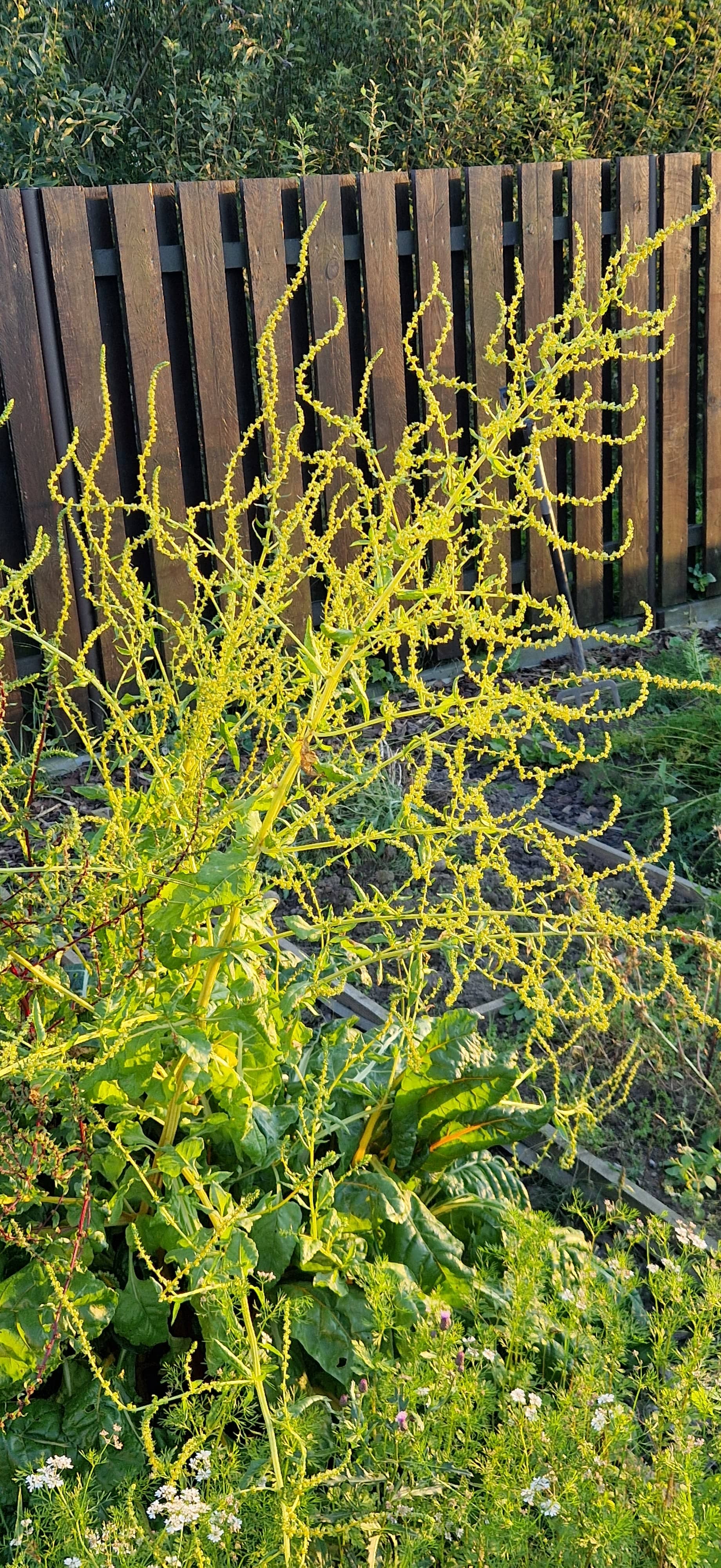 Sėdžiu rašydamas ir matau žydintį lapinį burokėlį - “mongoldą”. Auginu jau kelinti metai, bet pirmą kartą jie subrandino žiedynus ir sėklas. Aukštis tikrai nemažas, apie 1,8 metro. Dalis žiedinių stiebų išsišakoję auga tiesūs, kiti vingiuoja pažeme. Gal vien dėl eksperimento reiks pabandyti surinkti šiek tiek sėklų, pabandyti ar paskui jos bus daigios.