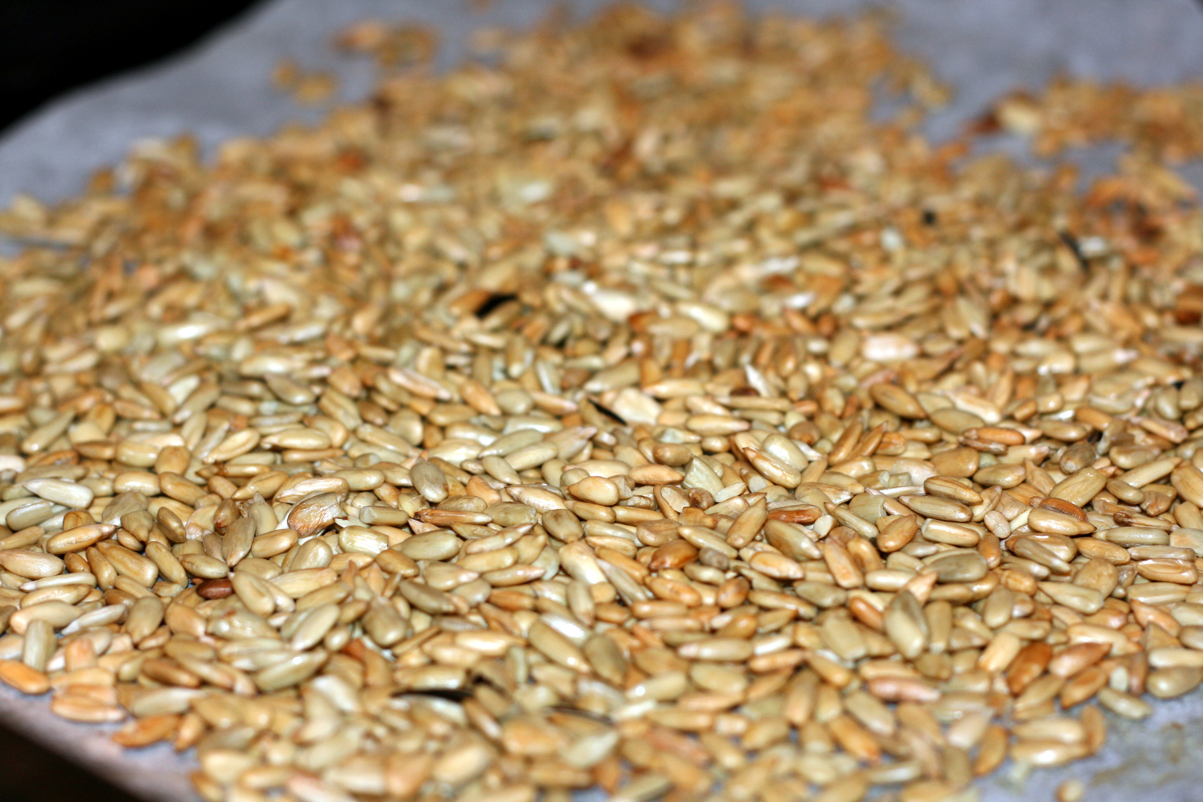 - Saulėgrąžų sėklas paskrudiname sausoje keptuvėje nuolat maišydami, kol ims keisti spalvą. Baigę skrudinti perpilkite į indą ir duokite atvėsti.