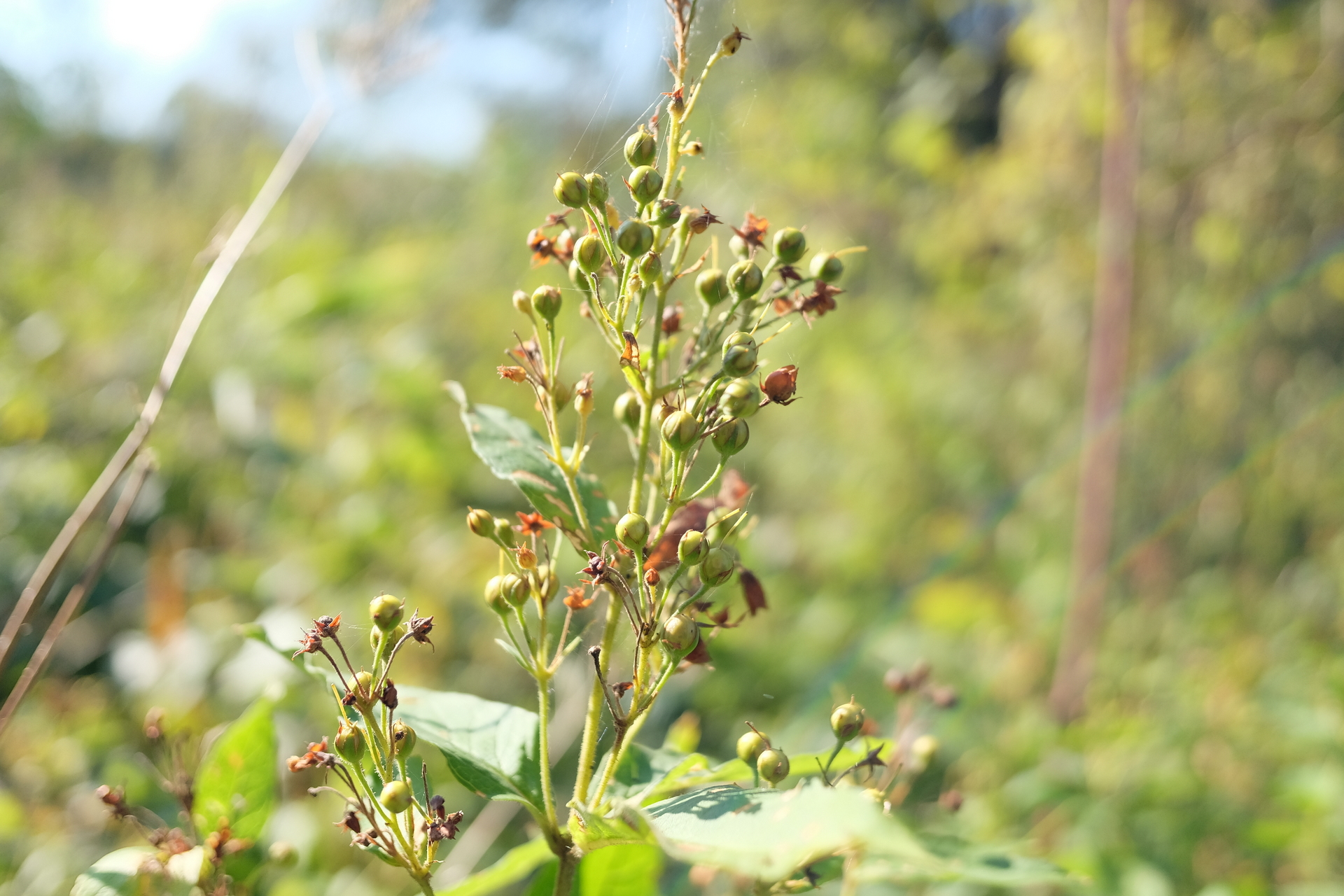 Begalvodamas apie matytą viksvą žengiu tolyn kažkada važinėtu keliuku. Sutraška krūmai, lengvu dunksėjimu kažkas skubiai pasišalina. Galbūt stirna? Stabtelėjęs žvalgausi aplinkui, gal dar kas sujudės tolumoje, bet veltui. Tyla. Grįžtu iš paupio Fotoaparato baterija senka, tad apsisuku grįžti atgal. Ir štai ant krūmo žvilga juodos uogos. Taip, tai šunobelė, iki šiol taip ir neteko jos gyvai pamatyti, o vis norėjau, nes buvau skaitęs jog lengva sumaišyti su šaltekšniu. Atskirti šiuos neaukštus medžius galima pagal lapo gyslų skaičių. Ir tikrai, šunobelės lape matyti tik kelios ryškios gyslos, o tiksliau po 3 kiekvienoje pusėje (šaltekšnio po 6 abejose pusėse). Fotografuoju tikėdamasis, kad galutinai neišseks baterija. Ir pasiseka.