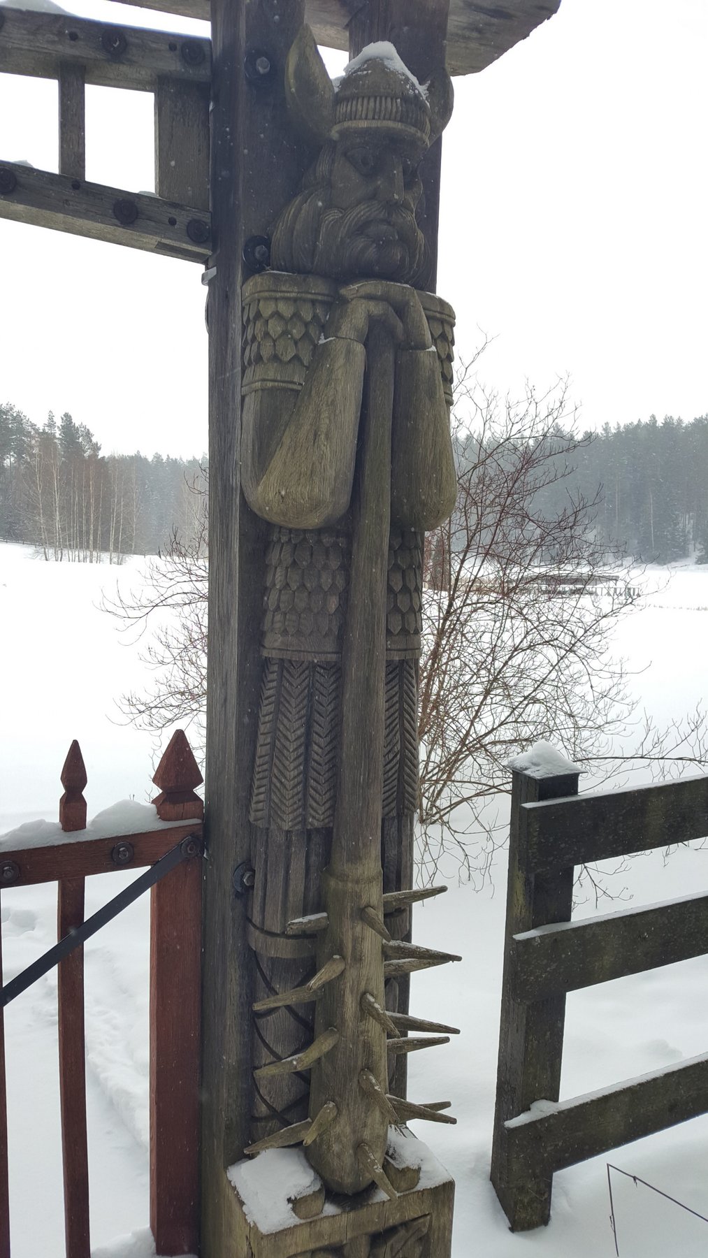 Perėjus asfaltuotą kelią einame mažai važinėjamu miško keliuku, kaip ir reikėjo tikėtis, nežinomas maršrutas = nuotykiai. Klampodami gana storu sniegu ieškome kaip judėti toliau ir nepasiklysti. Po kelių posūkių ir kelio išsišakojimų sudvejojame ar tik čia dar nebuvo eita :) Bet pastudijavę žemėlapius, pasitelkę telefono navigaciją pasiekiame gana aiškų žygio punktą - tvora aptvertą sodybą. Nors skaičiau, kad kažkur praėjimas turėtų būti - jo aplinkui nematyti. Galbūt užsnigtas, galbūt senei eitas ir užaugęs augmenija. Pasitarę nusprendžiame apeiti sodybą paežere.