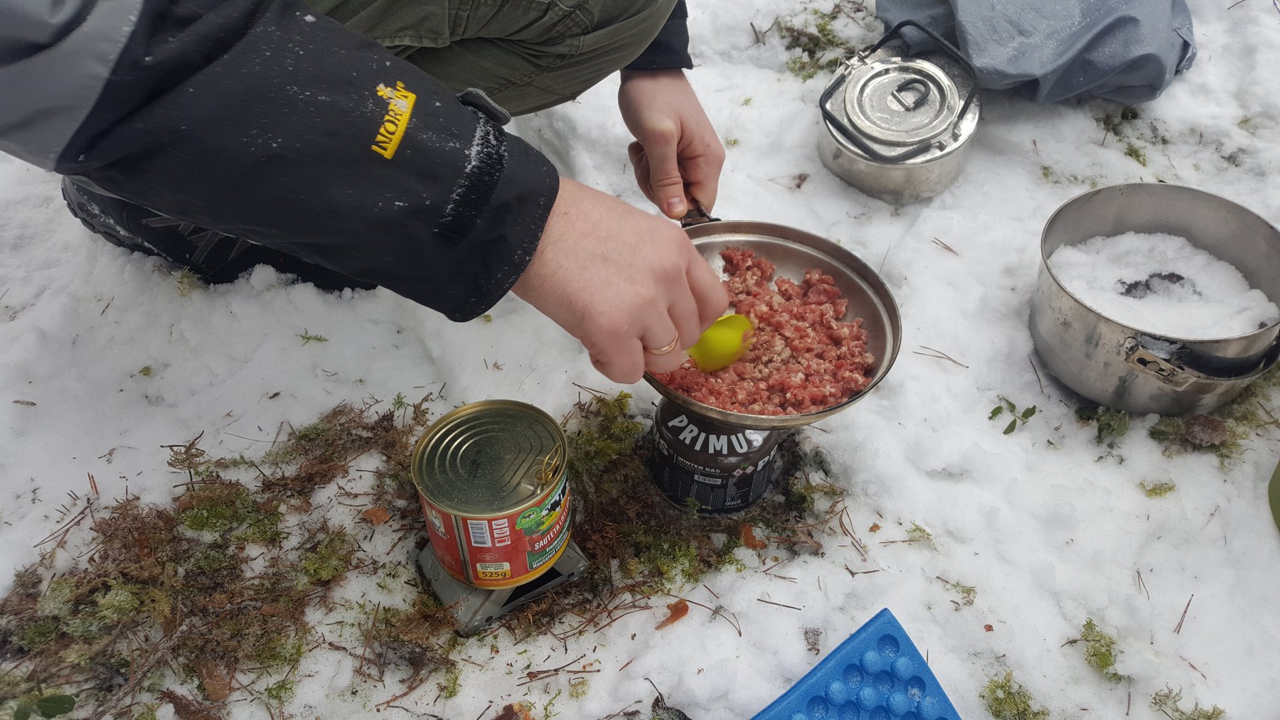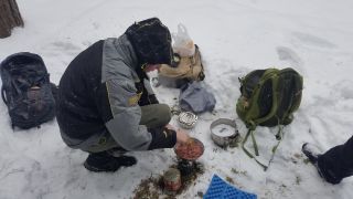 Metas gaminti sriubą. Naujas dujų mišinys neapvilia, nors šalčio ne daug, bet yra tekę likti nevalgius, nes dujų mišinys dideliame šaltyje tiesiog nedega. Kaičiame katiliuką, dedame ingredientus ir verdame sriubą. Tuo pat metu vyksta nedidelis eksperimentas, kuriuo metu spiritinės tabletės pagalba šildome mėsos konservus. Tabletės dega gerai, tačiau anksčiau neragautų konservų kokybė tikrai prasta. Tuo tarpu baigia virti mūsų sriuba, kurią esant šaltam orui reikia nedelsiant valgyti, kitaip viskas bematant atšals.