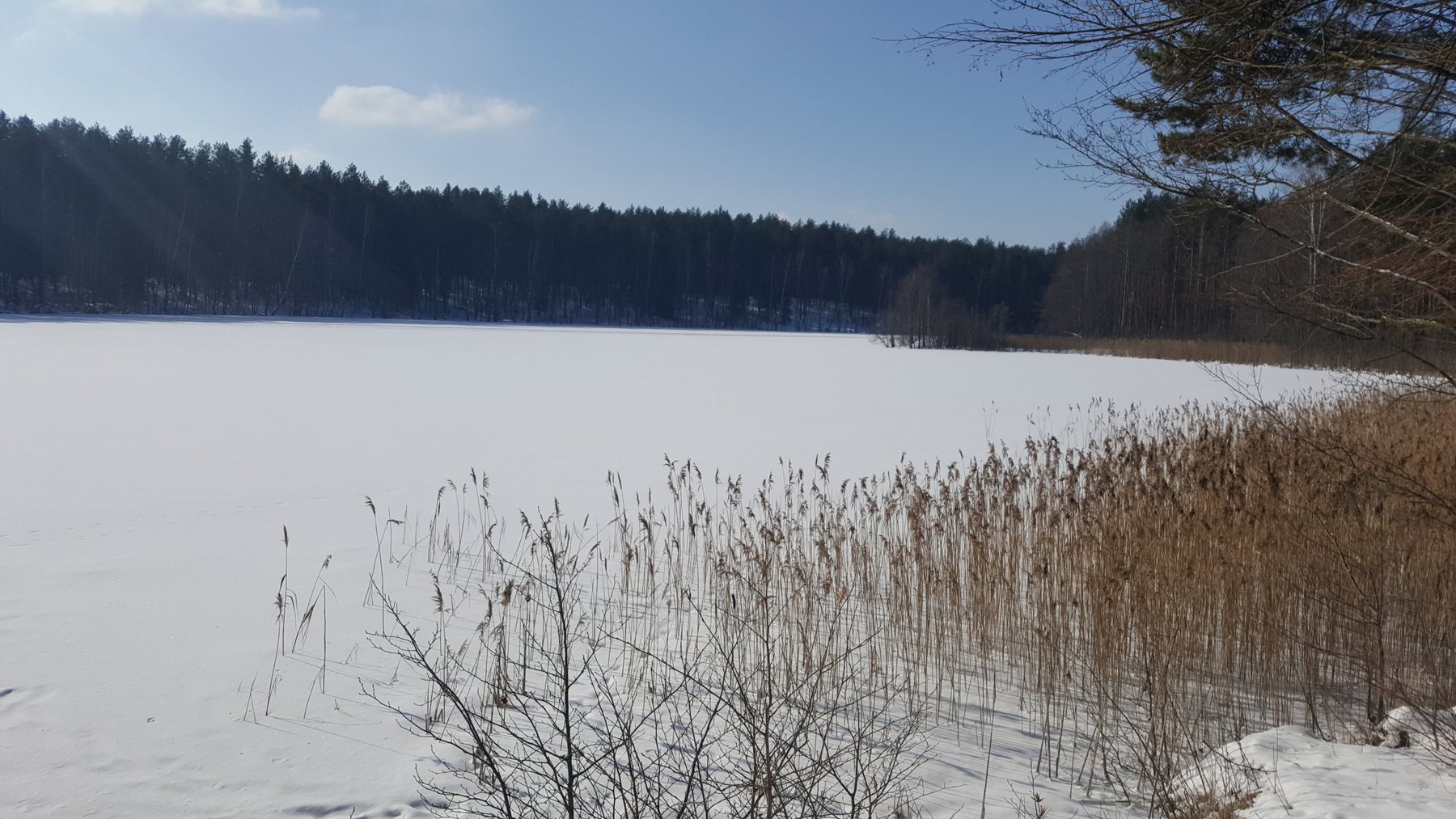 Klimpdami brendame iki pat ežero, kur matyti kad pakrantės visiškai neužšąla ir mūsų neišlaikys. Tad toliau kelią skinamės paežere kuria gal niekas niekada ir nevaikščiojo. Lėtai judant artėja pietų laikas, bet nusprendžiame pirma rasti kitą aiškų kelionės punktą - geležinkelio bėgius.